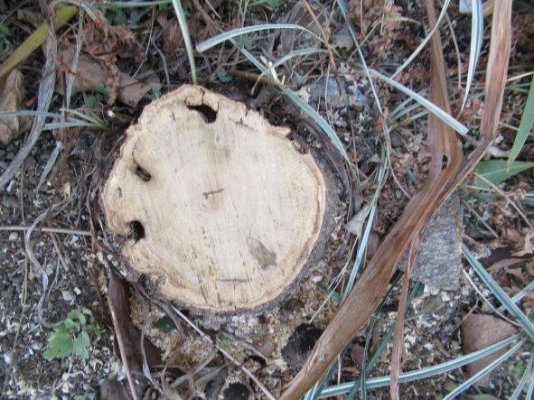 まず株に穴を開けて薬を注入し、
