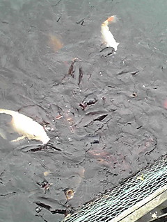 餌を投げてあげると、後ろの方に落ちてもちゃんと見つけて食べます。