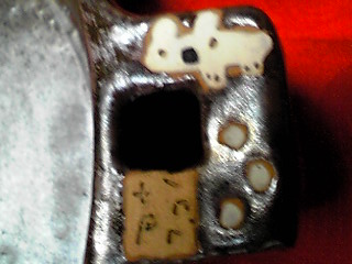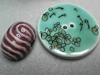 左は今年の新作だそうです。とても軽いボタンで、作家のお母様が編み物をなさるので軽いボタンを作ってみたのだそうです。