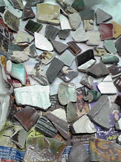 今朝は、チューリップの球根が掘り返され、隣に3つばかり落し物があるのをみて