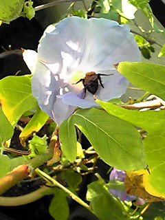 今朝は花の中で休んでいました。昨日の台風で疲れたのでしょう。