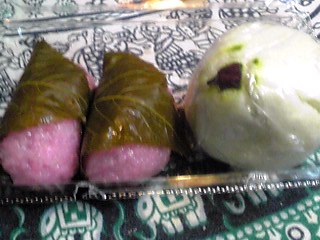 道明寺、桜まんじゅう。綺麗な色ですね。