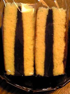 カステラで羊羹を挟んであるのですけど、パン屋さんのカステラだから、