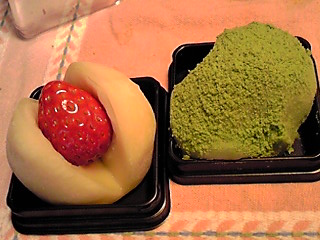 いちご大福のいちごの赤と、うぐいす餅の緑にちょっと春を感じます。