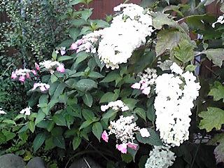 柏葉アジサイの枝を少し間引きして、マリーゴールドを切り戻し。