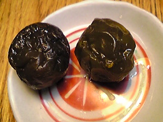 はちみつ漬けの梅ジュースができあがったので梅を引き上げる。