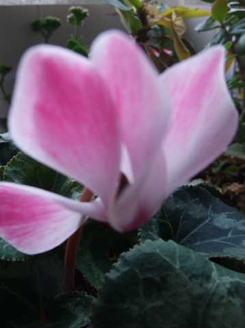 何かで読んだ気がするんですが、シクラメンは葉っぱ一枚と花が対になってるから葉っぱの数だけ花が咲く、とか・・・