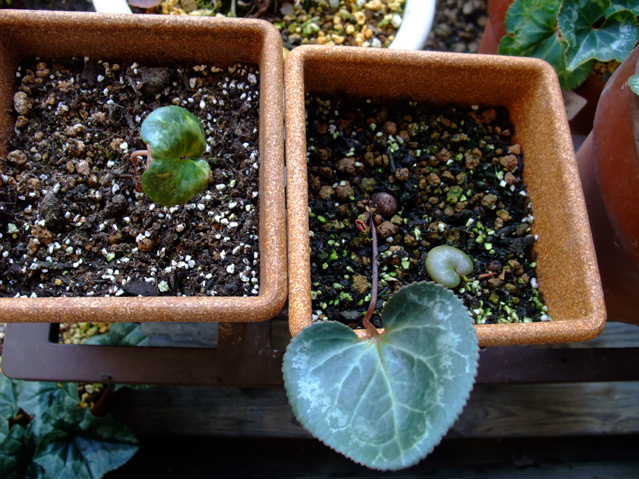 それにしても、発芽というと双葉が出るものだと思ってましたが、シクラメン(に限らないかもしれませんが)っていきなり本葉なんですね(^^;)