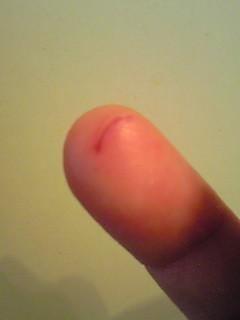中指を動かすと痛むので、湿布をして包帯をしております。