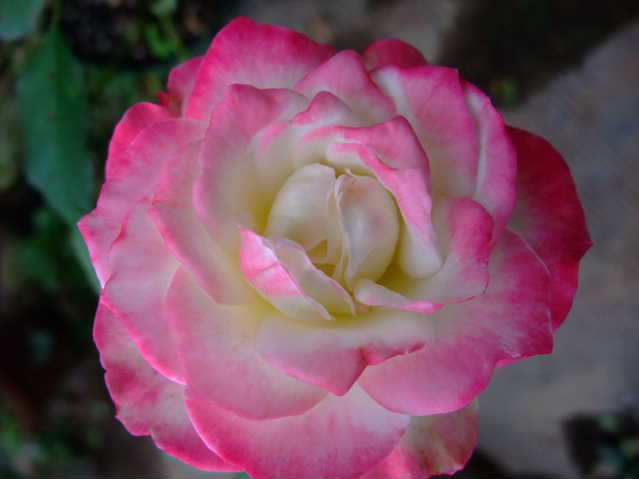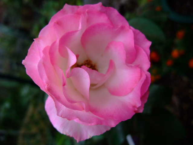 覆輪のように、花弁の外が濃くて、内側が淡い薔薇です。