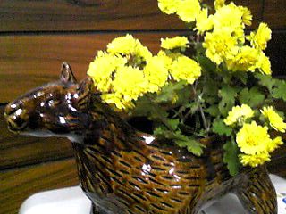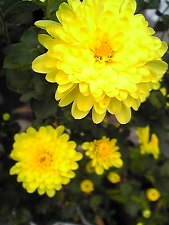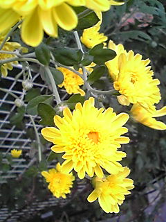 黄色の菊が満開なので、切って飾りました。