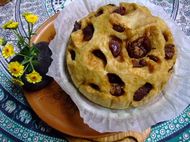 こわれ渋皮煮栗があったので、蒸しケーキにしました。