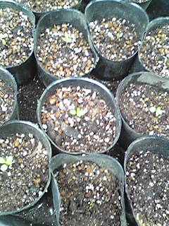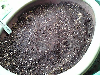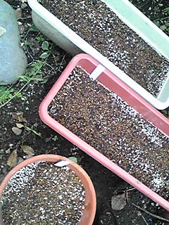双葉しか出ていないけど、青系と大輪はプランターに植え替えました。