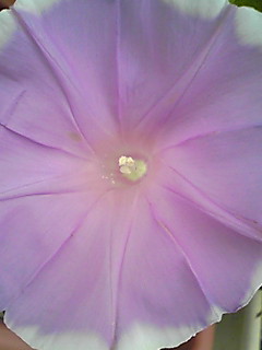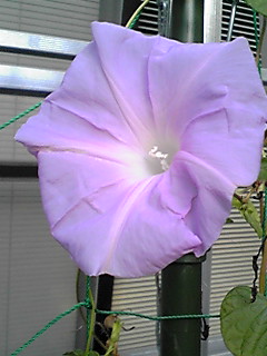 薄いピンクの朝顔。東向きプランターのアーリーコールミックス。