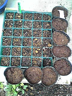デルフィニウムと、毎度お茶屋さんからもらうおまけ種、今回は「矢車菊」の種まき。