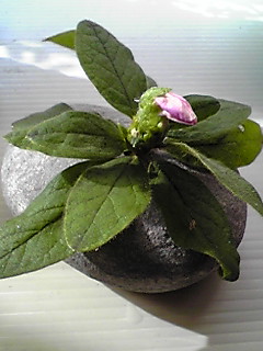 例の石のような花瓶に生けてみました。咲くかしら?