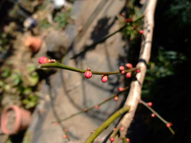 そういえば、ウチの椿も二つほど咲きかけていました。