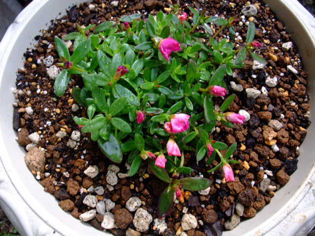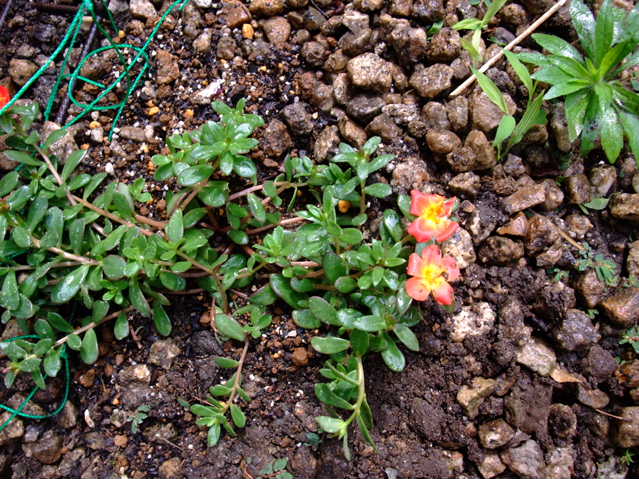 ジニア、ヘデラ、紫蘇を植えつけ。