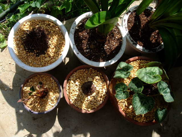 植え替え時期じゃないけど、アマリリスの根が鉢から出たので、