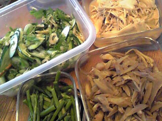 右下は、笹がきゴボウとマイタケの佃煮風。