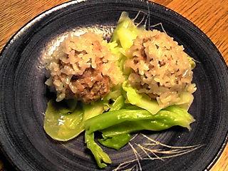 肉団子の具をまるめて、もち米をつけて蒸しあげるという感じです。(゜о゜)b