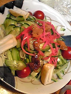 最近、出番が多いのは新玉ねぎときゅうりを梅酢で漬けたもの。