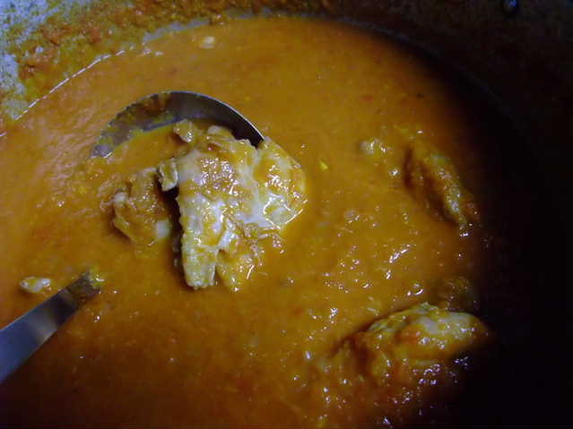 にんにく、しょうが、たまねぎ、チキン(皮と脂身は除去)、