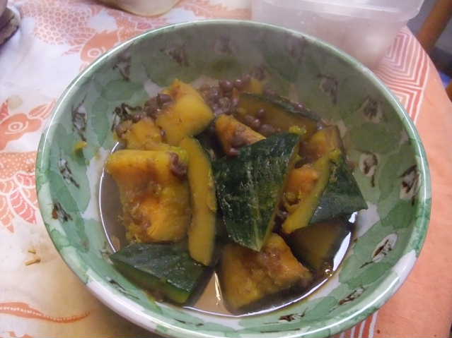 かぼちゃを煮て、小豆と合わせていとこ煮にしてみました。