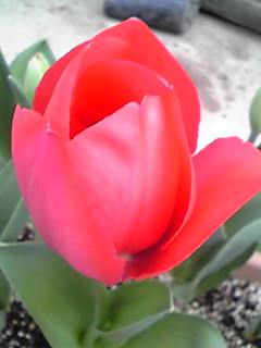 はい、いちばん日当たりがいいところに置いてあるチューリップなのですが、