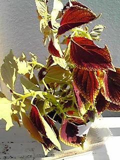 これは、昨夜の風雨で右側が下になって倒れたコリウス。