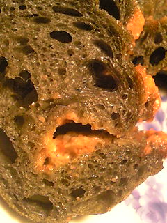 海鮮系の味。柔らかいフランスパンに、多分マヨネーズか何かで明太子を伸ばしてあって、