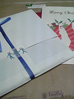>ホント、クリスマス感が溢れてる包み(&カード?)ですね。