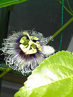 そうそう、パッションフルーツいきなり花が咲いたので慌てて受粉。(^^;