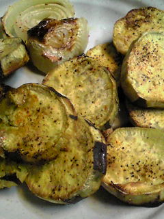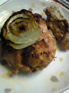 豚肉のハンバーグ玉ねぎ添え。サツマイモのグリル。