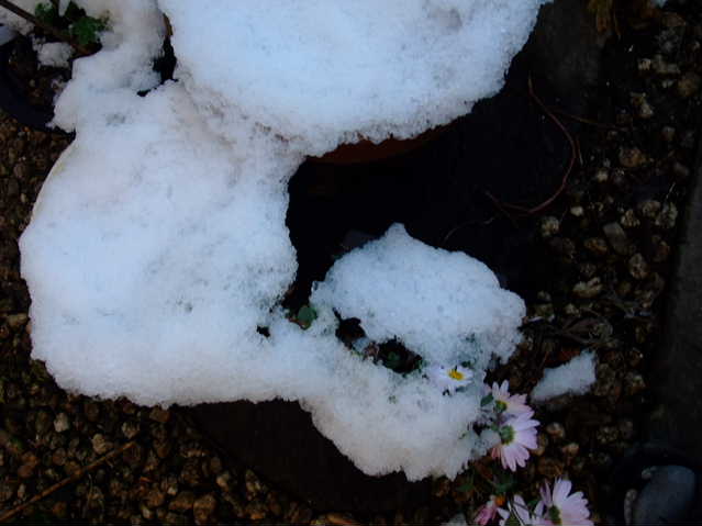 薔薇の枝にたまった雪を払いのけたので枝が折れないで済みましたが、