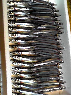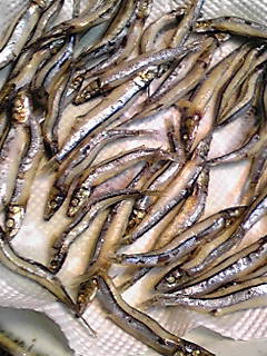 一本の串に8尾規則正しくぶら下がっていてそれが6連入り。