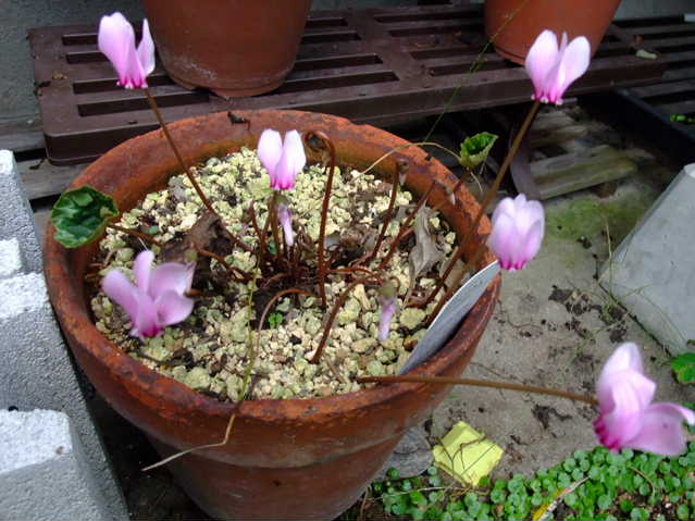 軒下のシクラメン。