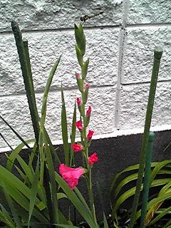 やっと咲いたグラジオラスとおまけのとんぼ。