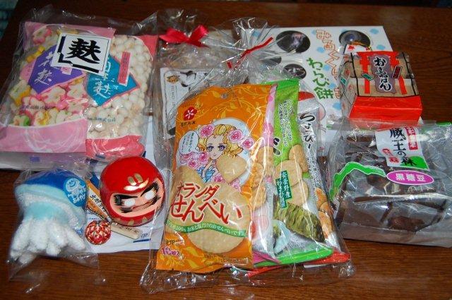 オランダせんべい3点セットにでん六の蔵王の森、木村屋のおきつねさん。