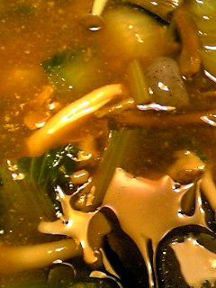 ぶなしめじ・なめこ・たもぎだけ・こんにゃく・さといも・青梗菜。