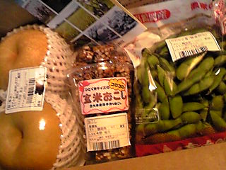 あっ、どこかで見たことのあるだだちゃ豆、梨、玄米おこし!