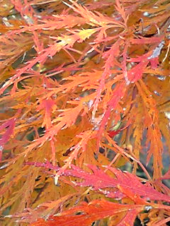 我が家のちりめん楓・・・・、色づいて落葉が始まっています。