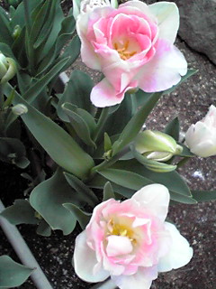 ピンクの八重のチューリップが咲き始めていました。