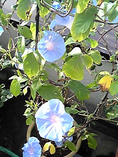 ピンクの朝顔は昨日のままで今朝も咲いていました。。。
