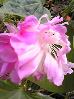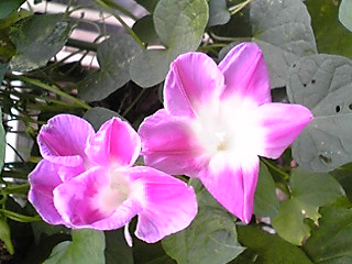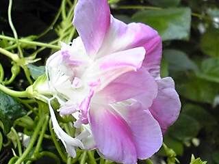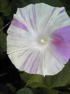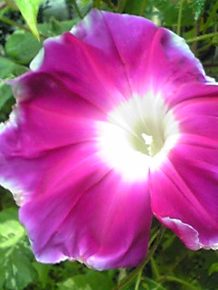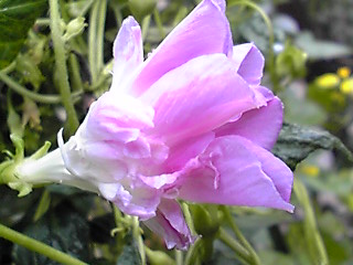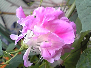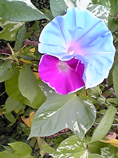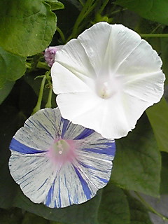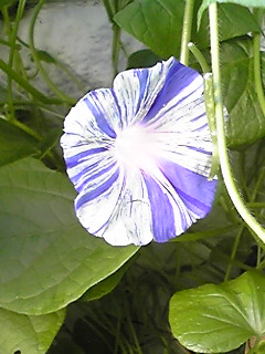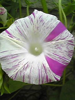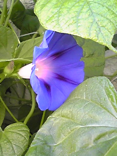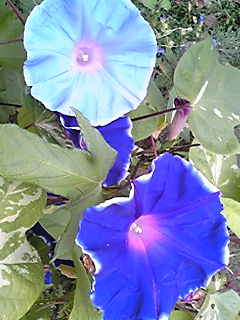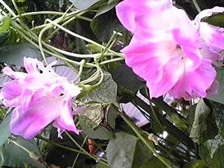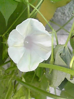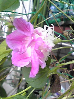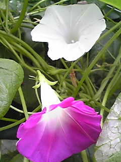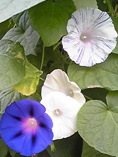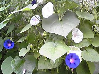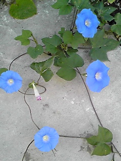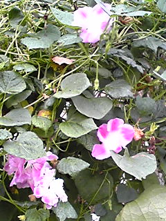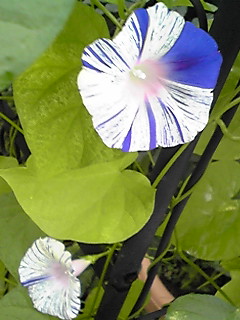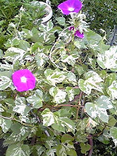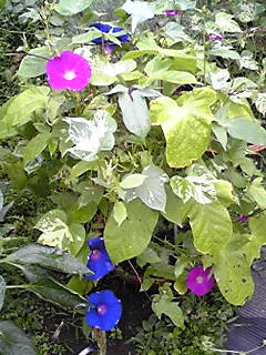 これはこぼれ種のようですが、ウチで育てた朝顔ではないようです。