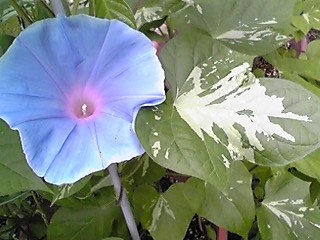 この水色は、葉が斑入りです。