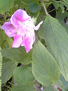 これはこぼれ種のようですが、ウチで育てた朝顔ではないようです。