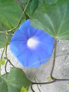 こぼれ種の朝顔、ヘブンリーブルーってこんな感じのような・・・