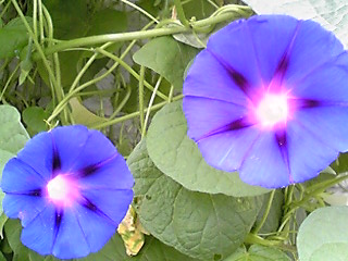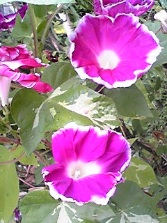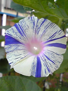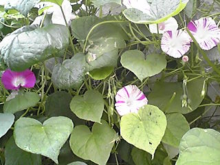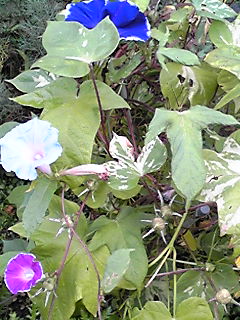 これはこぼれ種のようですが、ウチで育てた朝顔ではないようです。