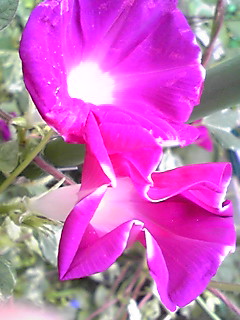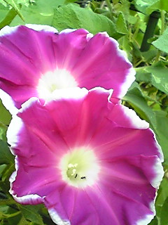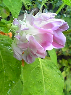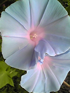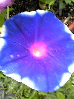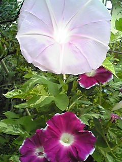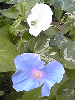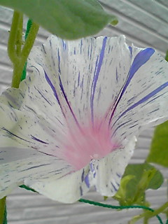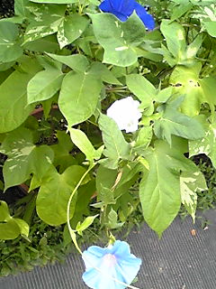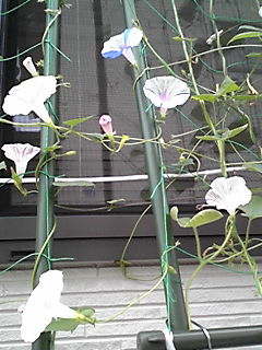 条絞りの白と水色?。これは早咲き西洋朝顔ミックス。